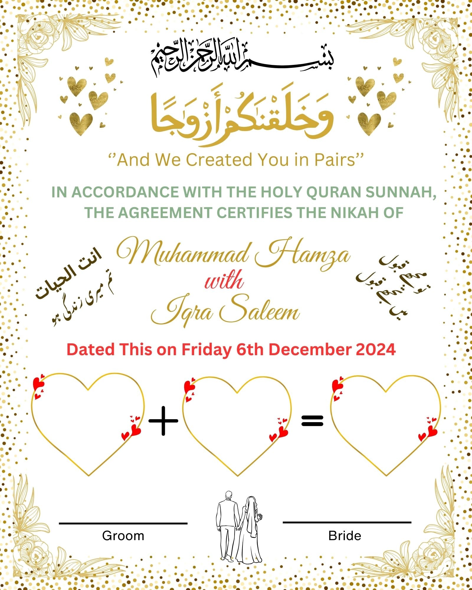 - Add names, the Nikah date, or a meaningful message to create a one-of-a-kind keepsake.